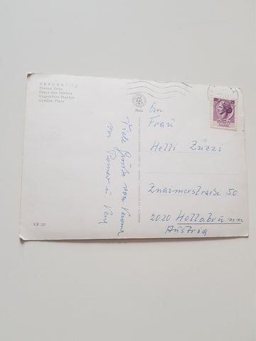 AK Verona. Piazza Erbe. Gelaufen. Großformat. Nummeriert: 20. Zustand: knittrig, Ecken angeknickt.