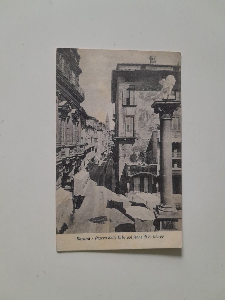 AK Verona. Piazza delle Erbe col leone di S. Marco. Ungelaufen. Kleinformat. Zustand: gut.