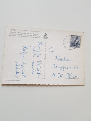AK Lago di Misurina. Gelaufen. Großformat. Nummeriert: 10/107. Zustand: gut, leicht bestoßen.