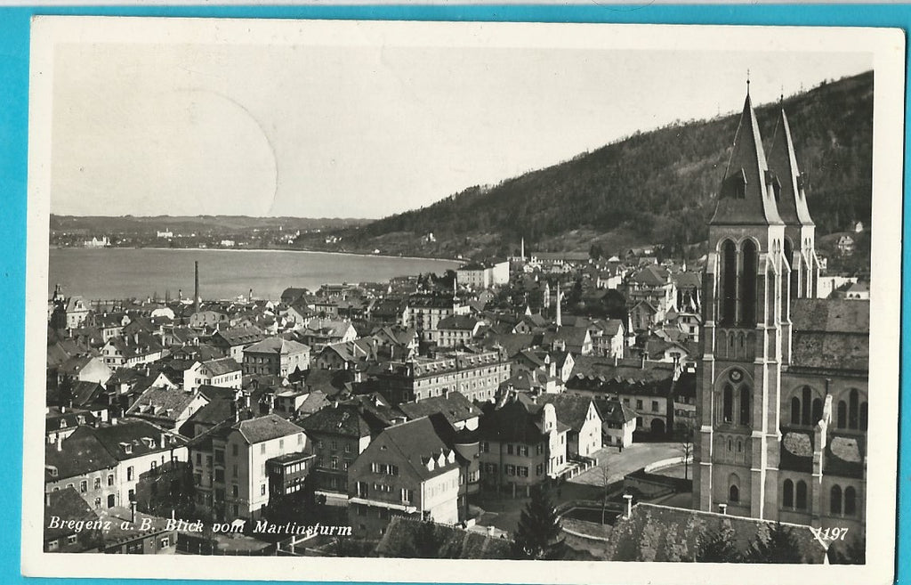 AK Bregenz. Blick vom Martinsturm. Gelaufen. Kleinformat. Verlag: Bader. Nummeriert: 1197. Zustand: gut.