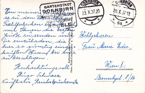 AK Dornbirn. Gelaufen 1937. Kleinformat. Verlag: Risch-Lau. Nummeriert: 5105. Zustand: gut.