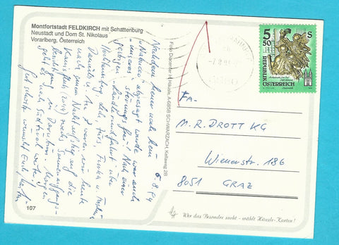 AK Feldkirch. Gelaufen. Großformat. Verlag: Häusle. Nummeriert: 107. Zustand: Stecknadeldurchstich oben in der Mitte, sonst O.k.