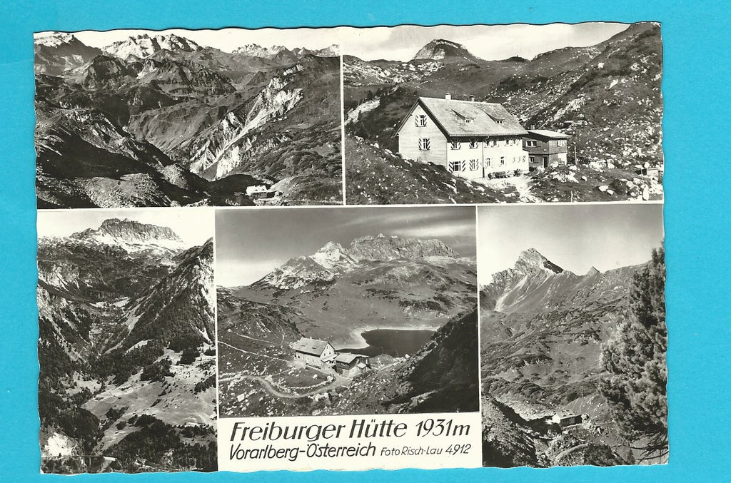 AK Freiburger Hütte. Gelaufen. Großformat. Verlag: Risch-Lau. Nummeriert: 4912. Zustand: linkes oberes Eck geknickt, Knick beim oberen Rand in der Mitte.