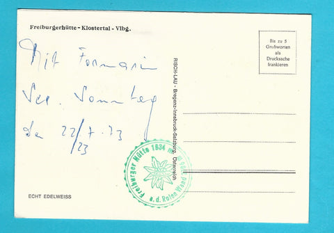AK Freiburgerhütte - Klostertal. (Edelweiss) Ungelaufen. Großformat. Verlag: Risch-Lau. Zustand: gut.