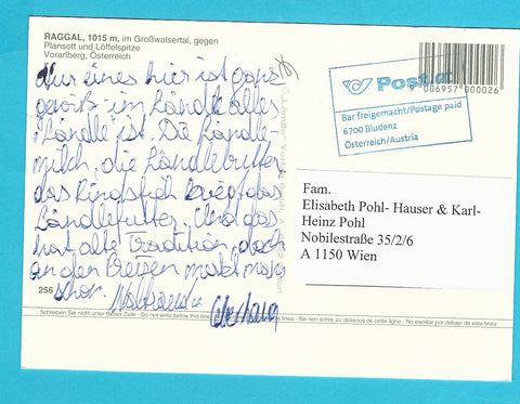 AK Raggal. Großwalsertal. Gelaufen. Großformat. Verlag: Ländle. Nummeriert: 256. Zustand: gut.