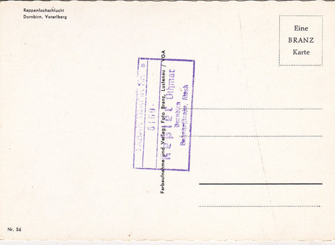 AK Rappenlochschlucht. Dornbirn. Ungelaufen. Großformat. Verlag: Branz. Nummeriert: 56. Zustand: Oberfläche leicht knittrig.