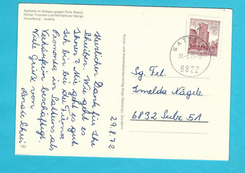 AK Satteins im Walgau gegen Rote Wand. Gelaufen. Großformat. Verlag: Sedlmayr. Nummeriert: 782. Zustand: Knick über dem linken oberen Eck, sonst O.k.