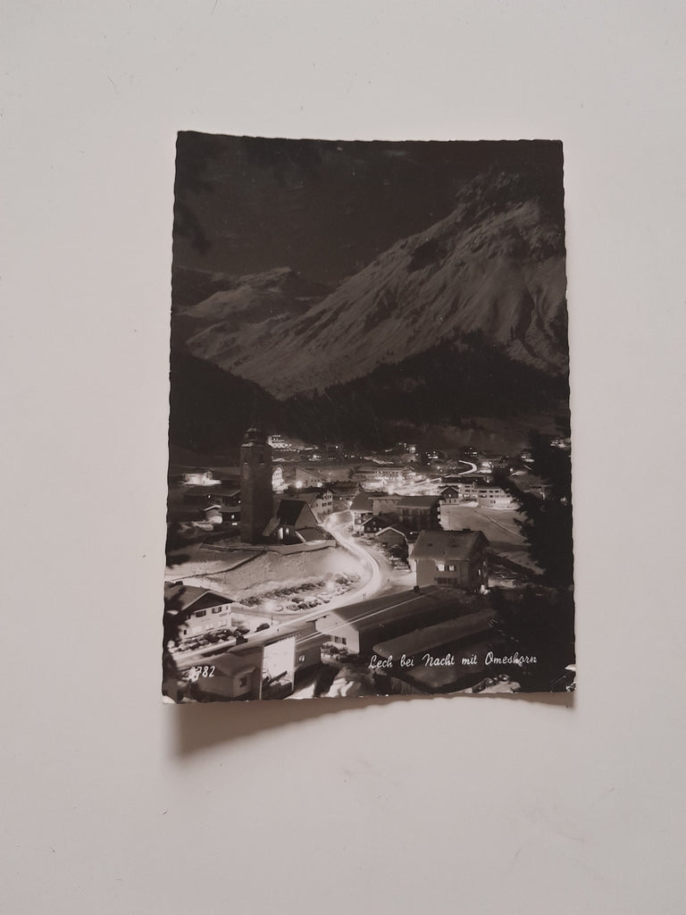AK Lech bei Nacht mit Omeshorn. Gelaufen. Großformat. Verlag: Branz. Nummeriert: 3782. Zustand: rechtes unteres Eck geknickt.