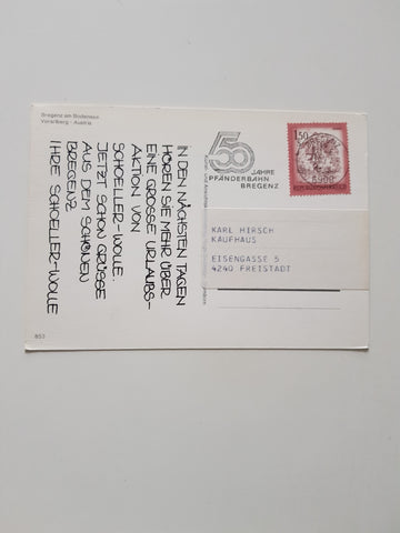AK Bregenz. Pfänder. Gelaufen. Großformat. Verlag: Sedlmayr. Nummeriert: 853. Zustand: gut, rechtes unteres Eck geknickt.