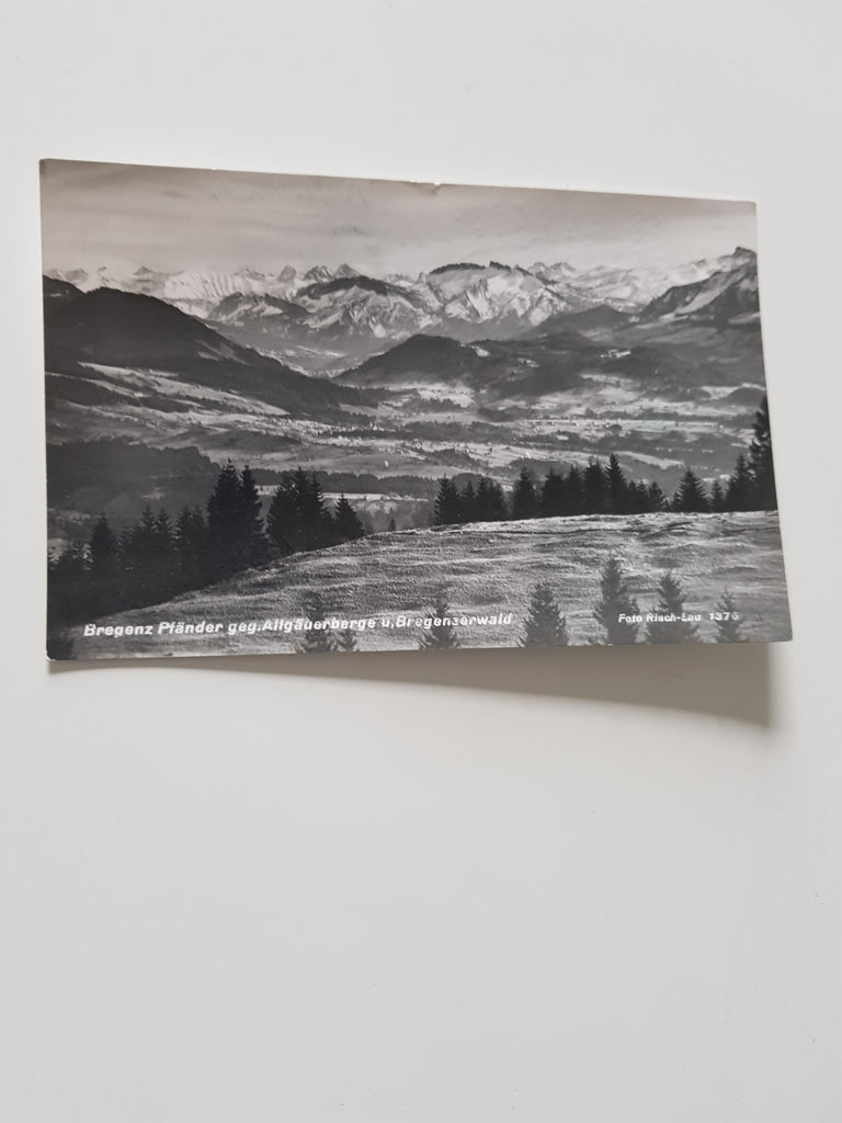 AK Bregenz. Pfänder geg. Allgäuerberge u. Bregenzerwald. Gelaufen, aber Briefmarke wurde entfernt. Kleinformat. Verlag: Risch-Lau. Nummeriert: 1376. Zustand: Einriss am oberen Rand.