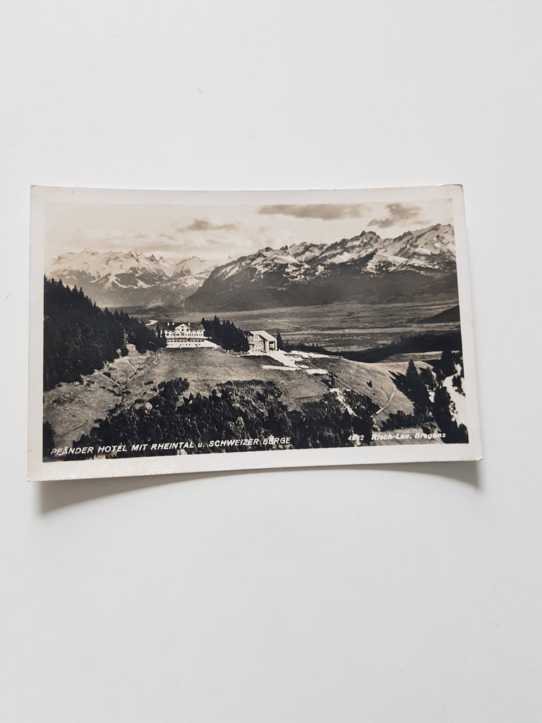 AK Pfänder Hotel mit Rheintal u. Schweizer Berge. Ungelaufen. Kleinformat. Verlag: Risch-Lau. Nummeriert: 4982. Zustand: gut.