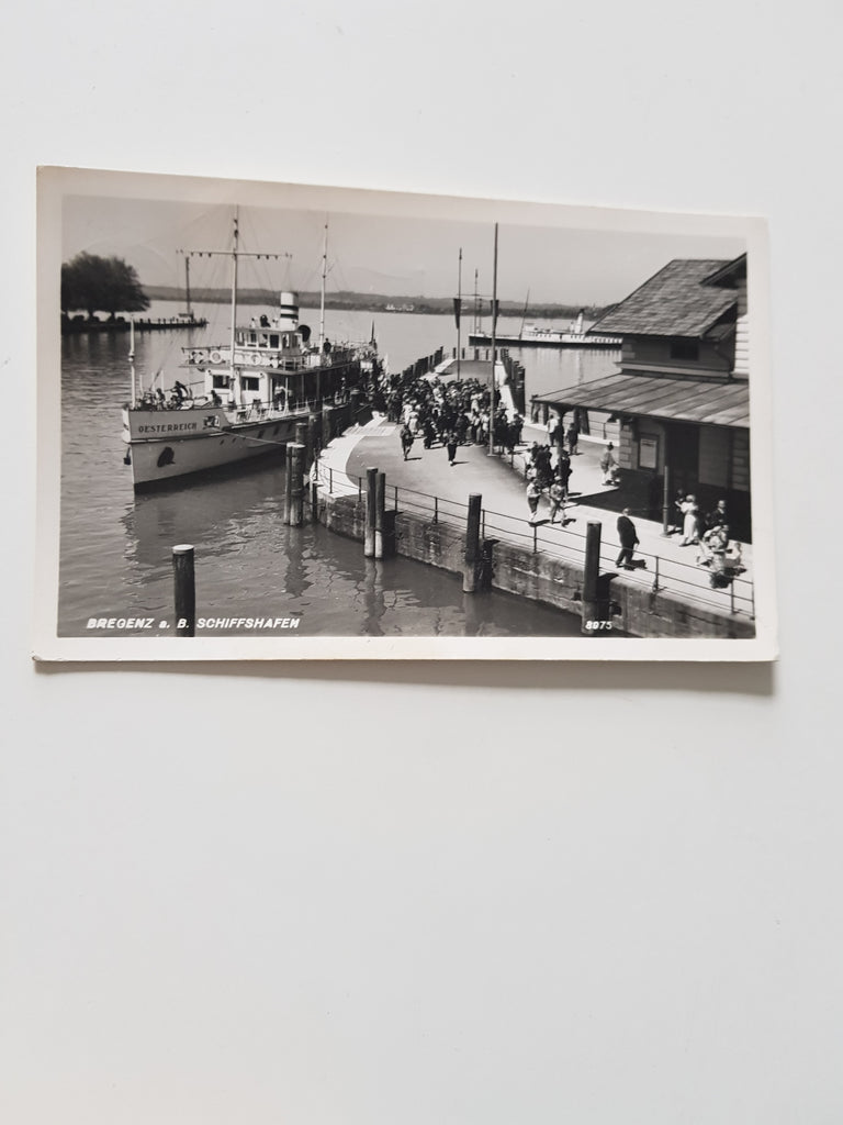 AK Bregenz. Schiffshafen. Gelaufen. Kleinformat. Verlag: Risch-Lau. Nummeriert: 8975. Zustand: gut, Knick am oberen Rand.
