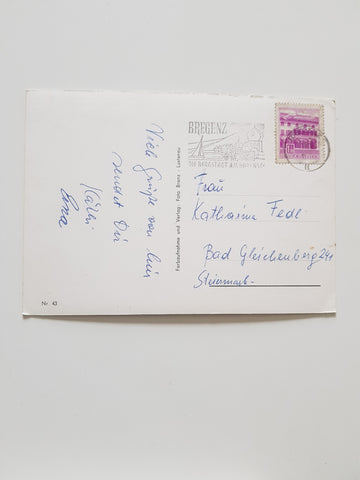 AK Grüße aus Bregenz. Gelaufen. Großformat. Verlag: Branz. Nummeriert: 43. Zustand: gut, linkes unteres Eck geknickt.
