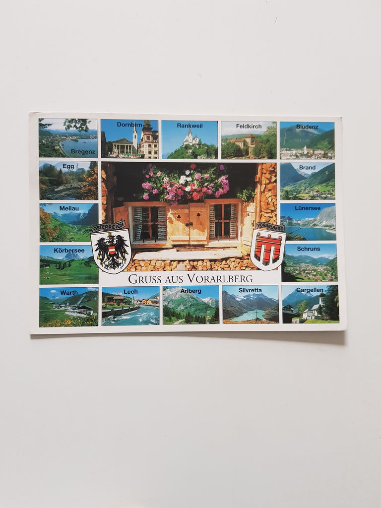 AK Gruss aus Vorarlberg. Gelaufen. Großformat. Verlag: Risch-Lau. Nummeriert: 53843. Zustand: gut, rechtes unteres Eck geknickt.
