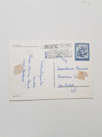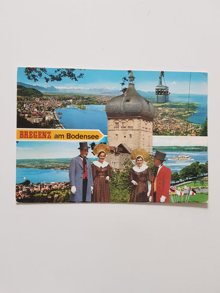 AK Bregenz am Bodensee. Gelaufen. Großformat. Verlag: Risch-Lau. Nummeriert: 27400. Zustand: rechtes oberes Eck angeknickt, Kleberückstände an Rückseite.