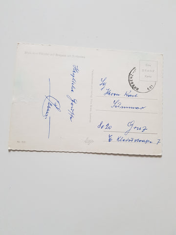 AK Blick vom Pfänder auf Bregenz am Bodensee. Gelaufen, aber Briefmarke wurde entfernt. Großformat. Verlag: Branz. Nummeriert: 525. Zustand: stärker bestoßen.