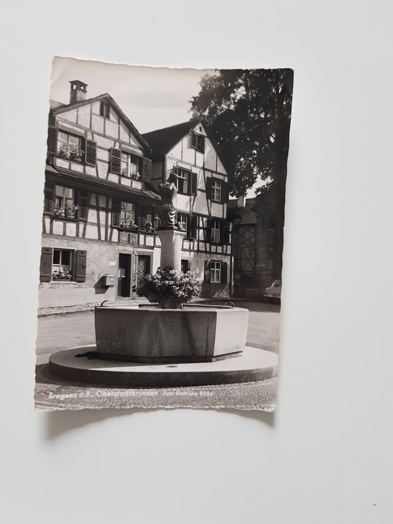 AK Bregenz. Oberstadtbrunnen. Gelaufen, aber Briefmarke wurde entfernt. Großformat. Verlag: Risch-Lau. Nummeriert: 8286. Zustand: stärker bestoßen.