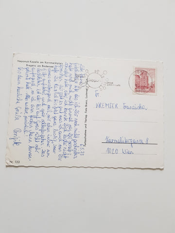 AK Bregenz. Nepomuk-Kapelle am Kornmarktplatz. Gelaufen. Großformat. Verlag: Branz. Nummeriert: 133. Zustand: Ecken geknickt bzw. angeknickt.