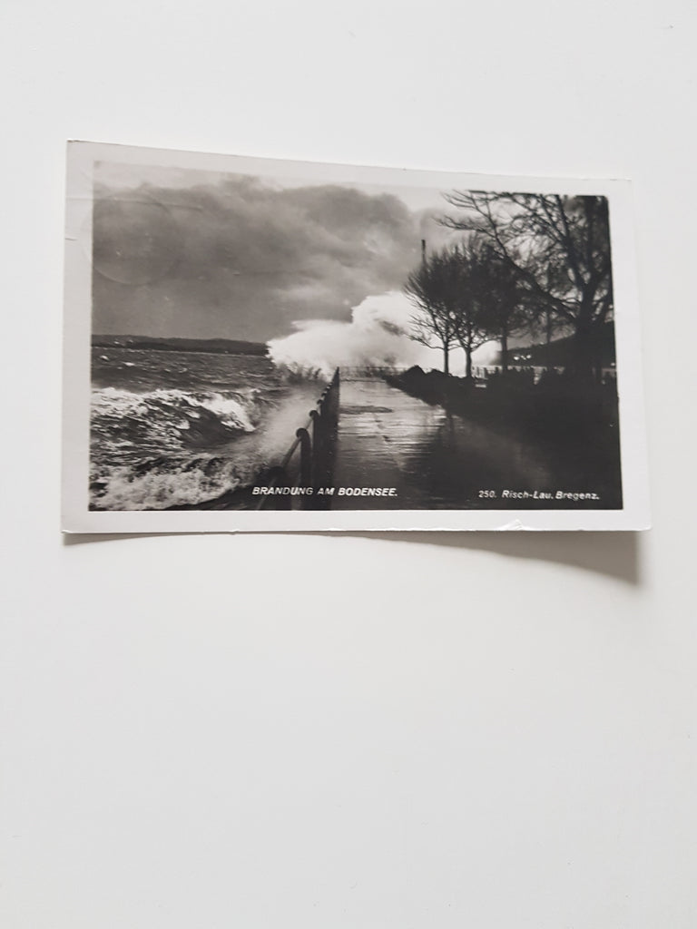 AK Brandung am Bodensee. Gelaufen. Kleinformat. Verlag: Risch-Lau. Nummeriert: 250. Zustand: Einriss am unteren Rand.