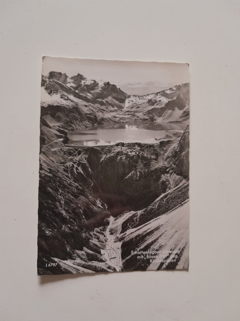 AK Schattenlagant-Lünersee mit Bösen Tritt geg. Kirchlispitzen. Gelaufen. Großformat. Verlag: Risch-Lau. Nummeriert: 6797. Zustand: gut.