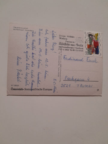 AK Übleschlucht bei Rankweil. Gelaufen. Großformat. Verlag: Risch-Lau. Nummeriert: 36520. Zustand: gut, linkes unteres Eck angeknickt.