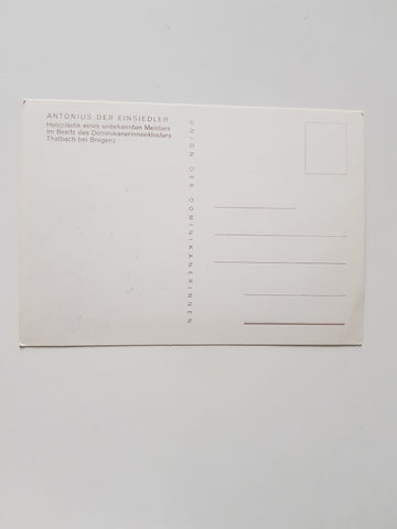 AK Antonius der Einsiedler. Holzplastik eines unbekannten Meisters im Besitz des Dominikanerinnenklosters Thalbach bei Bregenz. Ungelaufen. Großformat. Zustand: gut.