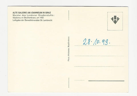 AK Alte Galerie am Joanneum in Graz: Meister des Londoner Gnadenstuhls: Madonna im Strahlenkrenz. Leihgabe der Benediktinerabtei St. Lambrecht. Ungelaufen. Großformat. Verlag: Hofstetter. Zustand: gut.
