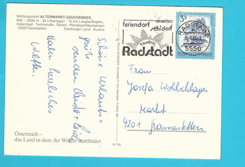 AK Altenmarkt. Zauchensee. Gelaufen. Großformat. Verlag: Schneider. Nummeriert: W 106. Zustand: linkes oberes Eck geknickt.