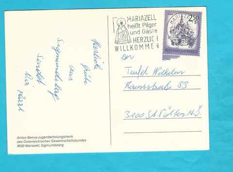 AK Anton Benya Kinder- und Jugenderholungsheim des ÖGB. Sigmundsberg bei Mariazell. Gelaufen. Großformat. Zustand: linkes oberes Eck geknickt, stärker fleckig.