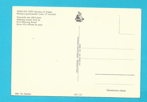 AK Aquileia. Basilica di Poppo. Mosaico pavimentale. Fanciulla che offre pane. Ungelaufen. Großformat. Verlag: Ghedina. Nummeriert: 329.133. Zustand: gut.