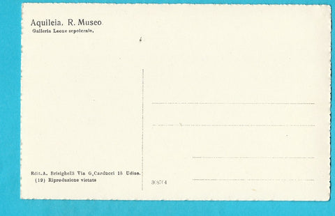 AK Aquileia, R. Museo. Galleria Leone sepolcrale. Ungelaufen. Kleinformat. Verlag: Brisighelli. Nummeriert: 19. Zustand: gut.