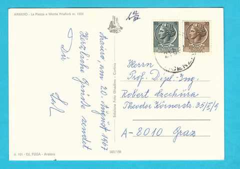 AK Arsiero - La Piazza e Monte Priafora. Gelaufen. Großformat. Verlag: Ghedina bzw. Fuga. Nummeriert: 101.