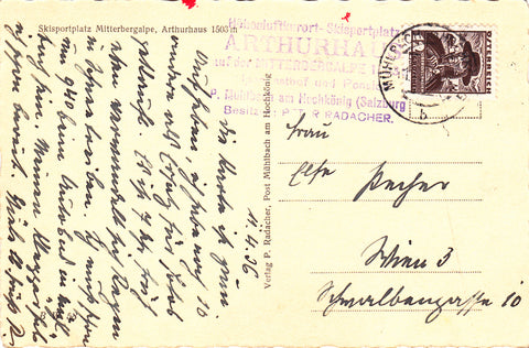 AK Arthurhaus mit Mandlwand. Gelaufen 1926. Kleinformat. Verlag: Cosy bzw. Radacher. Nummeriert: B W 58. Zustand: gut.