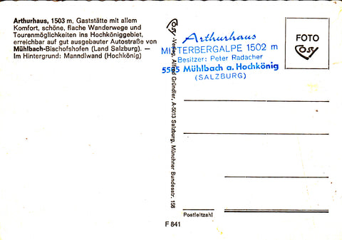 AK Arthurhaus. Mitterbergalpe. Besitzer: Peter Radacher. Mühlbach am Hochkönig.