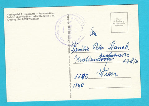 AK Arzberghütte mit Gipfelkreuz. Arzberg 124. Waldbach. Ungelaufen. Großformat. Verlag: Stohl. Zustand: gut.