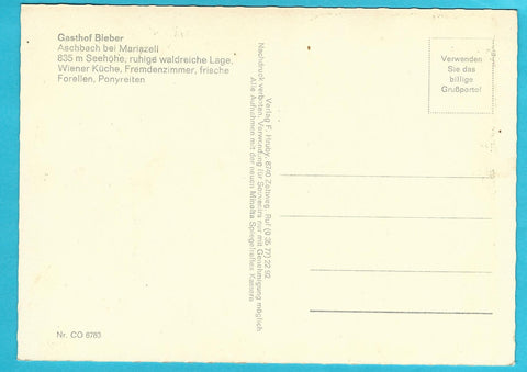 AK Aschbach bei Mariazell. Gasthof Bieber. Ungelaufen. Großformat. Verlag: Hruby. Nummeriert: 6783. Zustand: gut.
