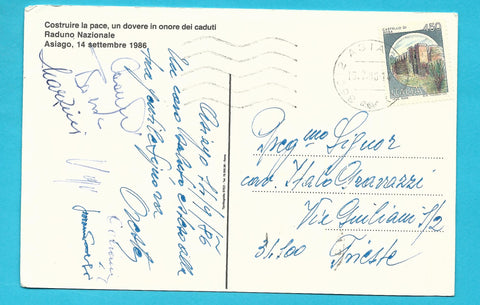 AK Asiago. Costruire la pace, un dovere in onore dei caduti. Raduno Nazionale 14 settembre 1986. Gelaufen. Großformat. Zustand: Ecken und am oberen Rand geknickt.