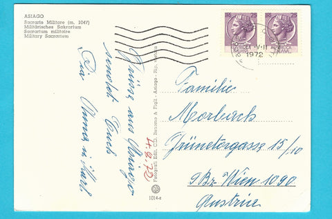 AK Asiago. Sacrario Militare. Gelaufen. Großformat. Verlag: Bonomo.