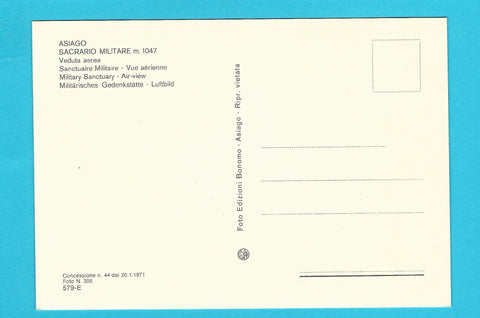 AK Asiago. Sacrario Militare. Veduta aerea. Ungelaufen. Großformat. Verlag: Bonomo. Nummeriert: 579-E. Zustand: gut.