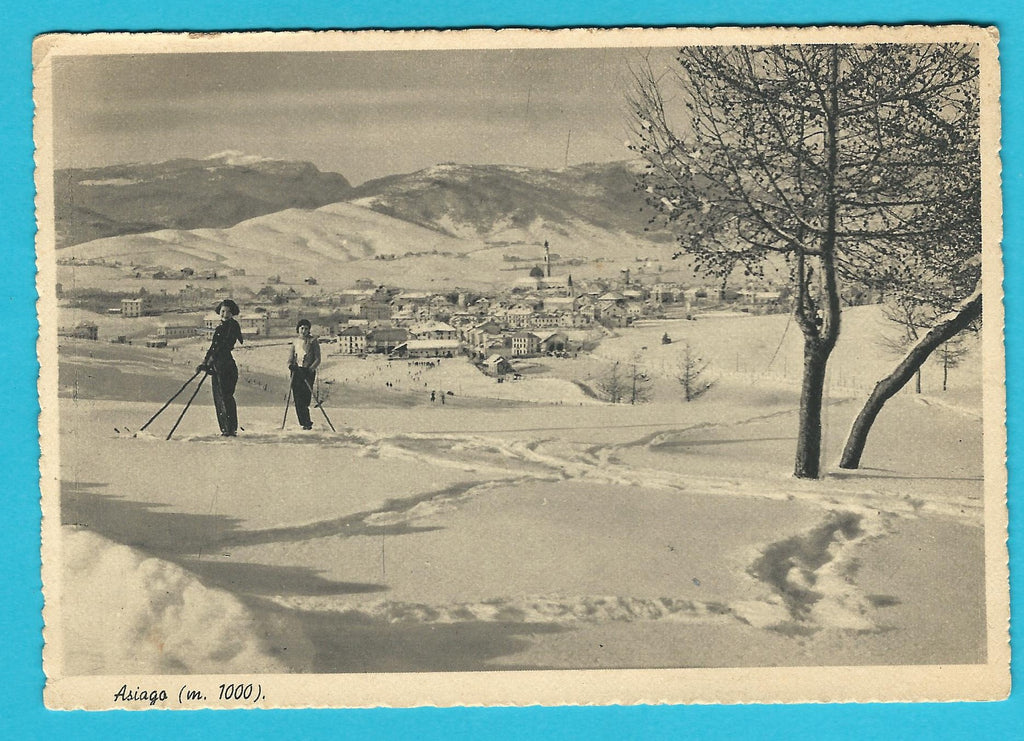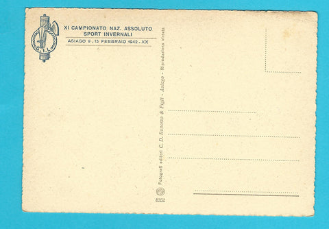 AK Asiago. XI Campionato Naz. Assoluto Sport Invernali Asiago 9-15 Febbraio 1942. Ungelaufen. Großformat. Verlag: Bonomo. Nummeriert: 8352. Zustand: gut, linke Ecken wenig angeknickt.
