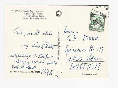 AK Asolo - Castello Regina Cornaro. Gelaufen. Großformat. Verlag: Dei Rossi bzw. Foto Ghedina. Nummeriert: 305 8. Zustand: Zustand: linkes unteres Eck mehrfach geknickt, sonst O.k.