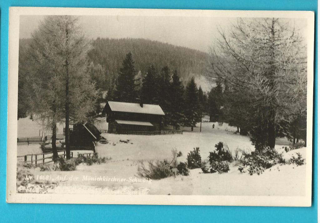AK Auf der Mönichkirchner Schwaig. Gelaufen, aber Briefmarke wurde entfernt. Kleinformat. Nummeriert:1468. Zustand: gewölbt.