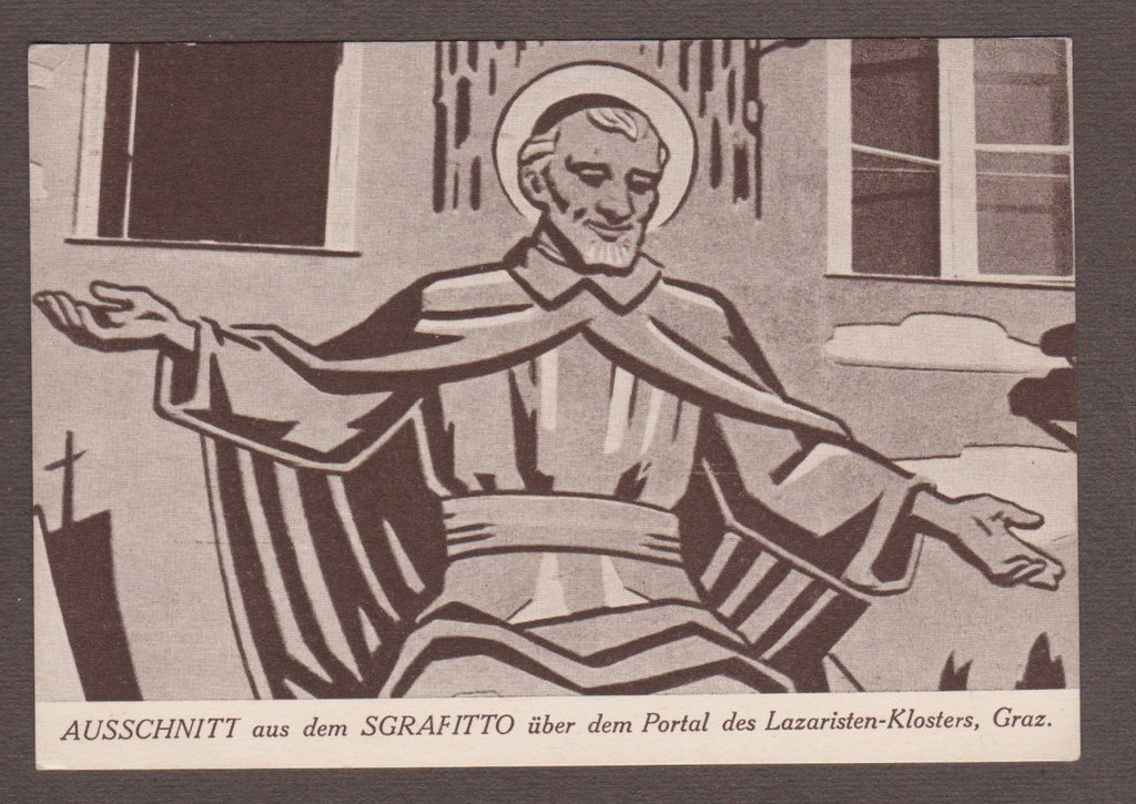 AK Ausschnitt aus dem Sgrafitto über dem Portal des Lazaristen-Klosters Graz (Mariengasse) (v. Toni Hafner)