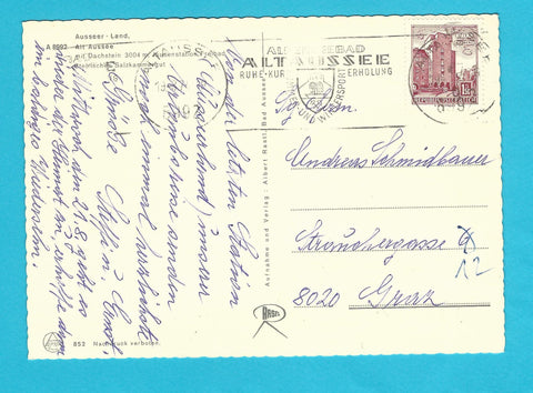 AK Ausseer Land. Alt Aussee mit Dachstein, Jausenstation, Freibad. Gelaufen. Großformat. Verlag: Rastl. Nummeriert: 852. Zustand: gut, nur leichte Randläsuren.