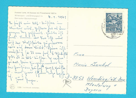 AK Ausseer Land. Alt Aussee mit Trisselwand. Gelaufen. Großformat. Verlag: Rastl. Nummeriert: 1259. Zustand: rechtes oberes Eck geknickt, linke Ecken wenig angestoßen.