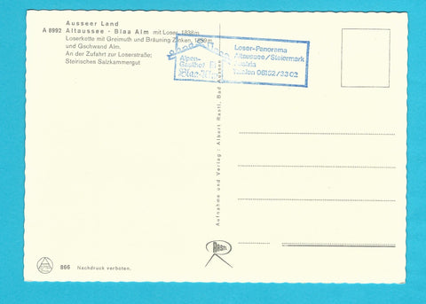 AK Ausseer Land. Altaussee - Blaa Alm. Ungelaufen. Großformat. Verlag: Rastl. Nummeriert: 866. Zustand: gut.