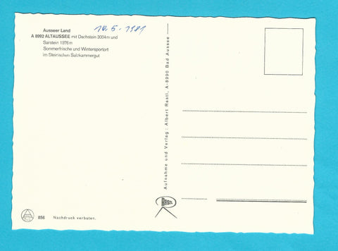 AK Ausseer Land. Altaussee mit Dachstein und Sarstein. Ungelaufen. Großformat. Verlag: Rastl. Nummeriert: 856. Zustand: gut.