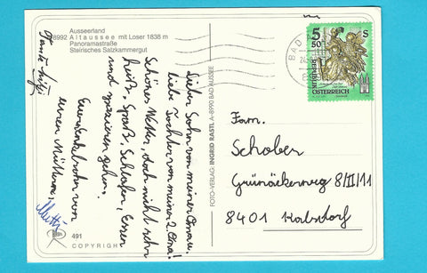 AK Ausseer Land. Altaussee mit Loser. Gelaufen. Großformat. Verlag: Rastl. Nummeriert: 491. Zustand: linkes oberes Eck doppelt geknickt, sonst O.k.