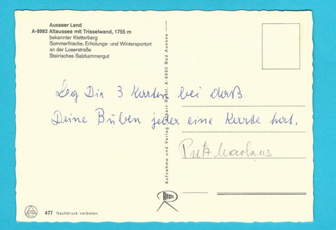 AK Ausseer Land. Altaussee mit Trisselwand. Ungelaufen. Großformat. Verlag: Rastl. Nummeriert: 477. Zustand: gut, linke Ecken angeknickt.