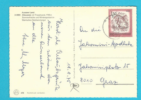 AK Ausseer Land. Altaussee mit Trisselwand. Gelaufen. Großformat. Verlag: Rastl. Nummeriert: 479. Zustand: linkes oberes Eck geknickt, etwas zerkratzt.